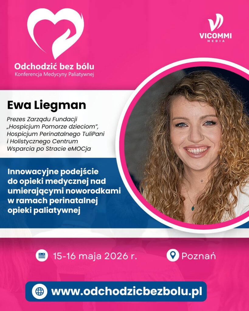 Drugiego dnia konferencji (16 maja 2026 r.) Ewa Liegman przedstawi wykład poświęcony innowacyjnemu podejściu do opieki medycznej nad umierającymi noworodkami w ramach perinatalnej opieki paliatywnej.
